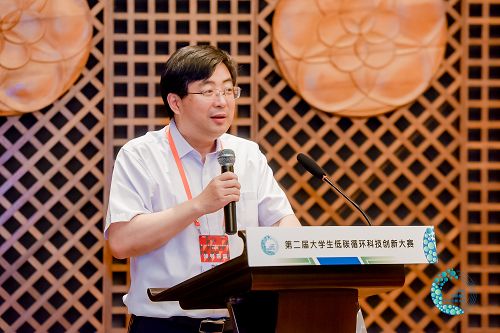 低碳大赛委员会秘书长李俊作大赛赛事介绍,对大赛组委会从大赛组织、初赛评审、奖项设置等工作进行了简要说明,并对实验研究、调研报告、产品设计与成果应用、产业赛道四个作品类别评分标准作了解读。